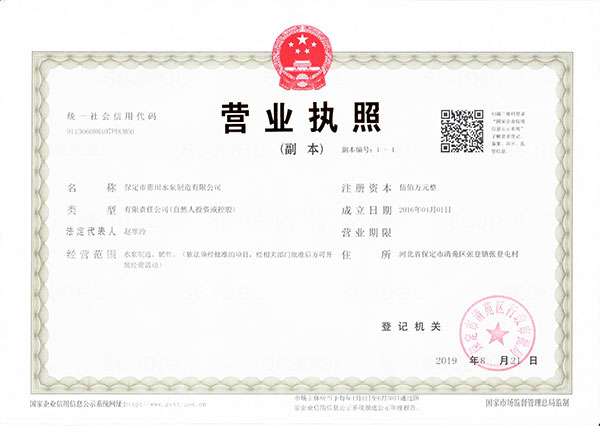 保定市惠田水泵制造有限公司专业生产水浸式深井泵、油浸式深井泵、自吸泵、JET喷射自吸泵、WQ污水污物潜水泵等产品,拥有完整、科学的质量管理体系。保定市惠田水泵制造有限公司的诚信、实力和产品质量获得业界的认可。我们秉着“品质”“服务”“人才”“创新”的经营理念,并以良好的品质,合理的价格,热情的服务为目的来服务客户。在此欢迎各界朋友莅临参观,指导和业务洽谈。